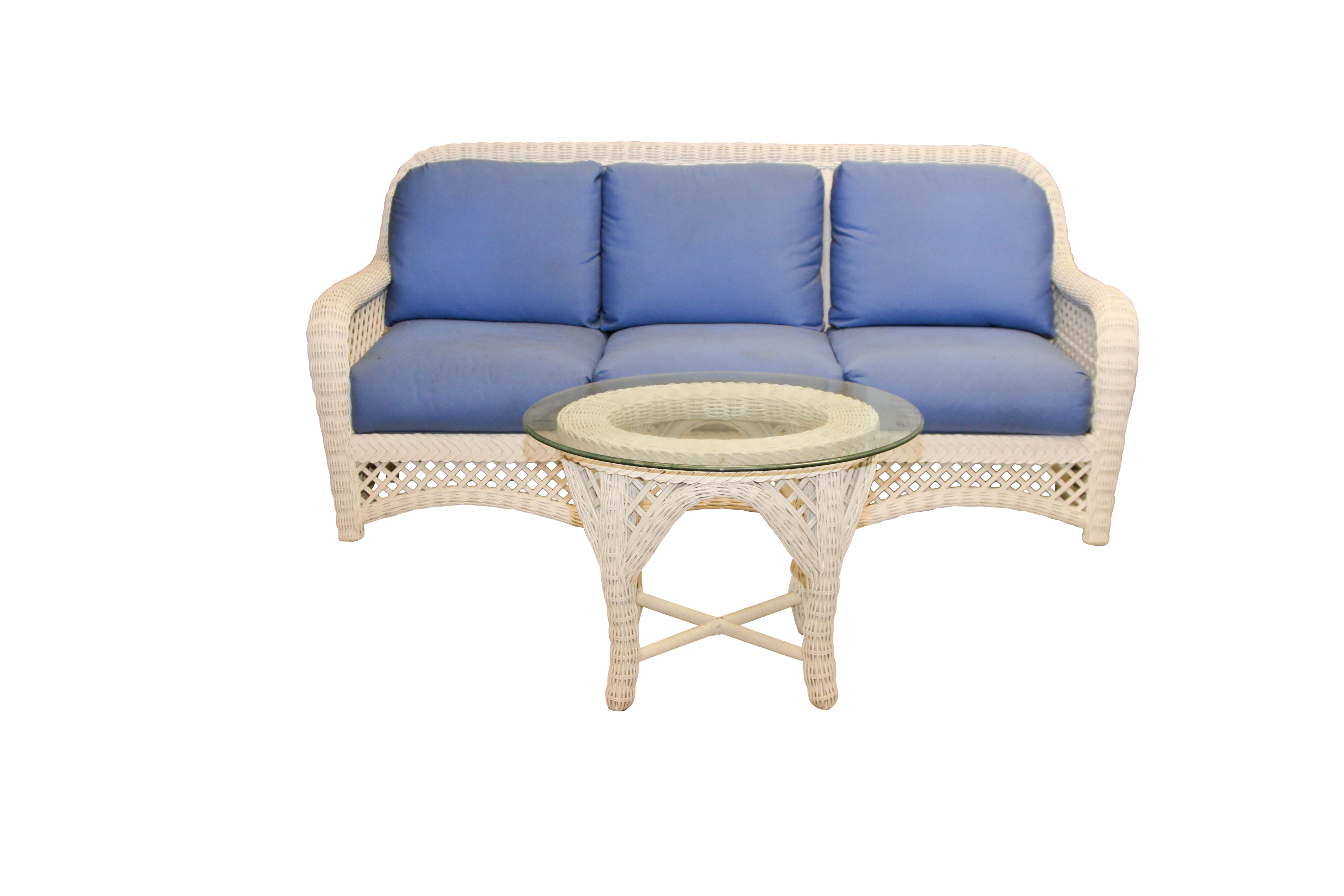 Wicker Table And Chairs With Glass Top - White Wicker Sofa and Oval Glass Top Table | EBTH / Simple form and elegant design.